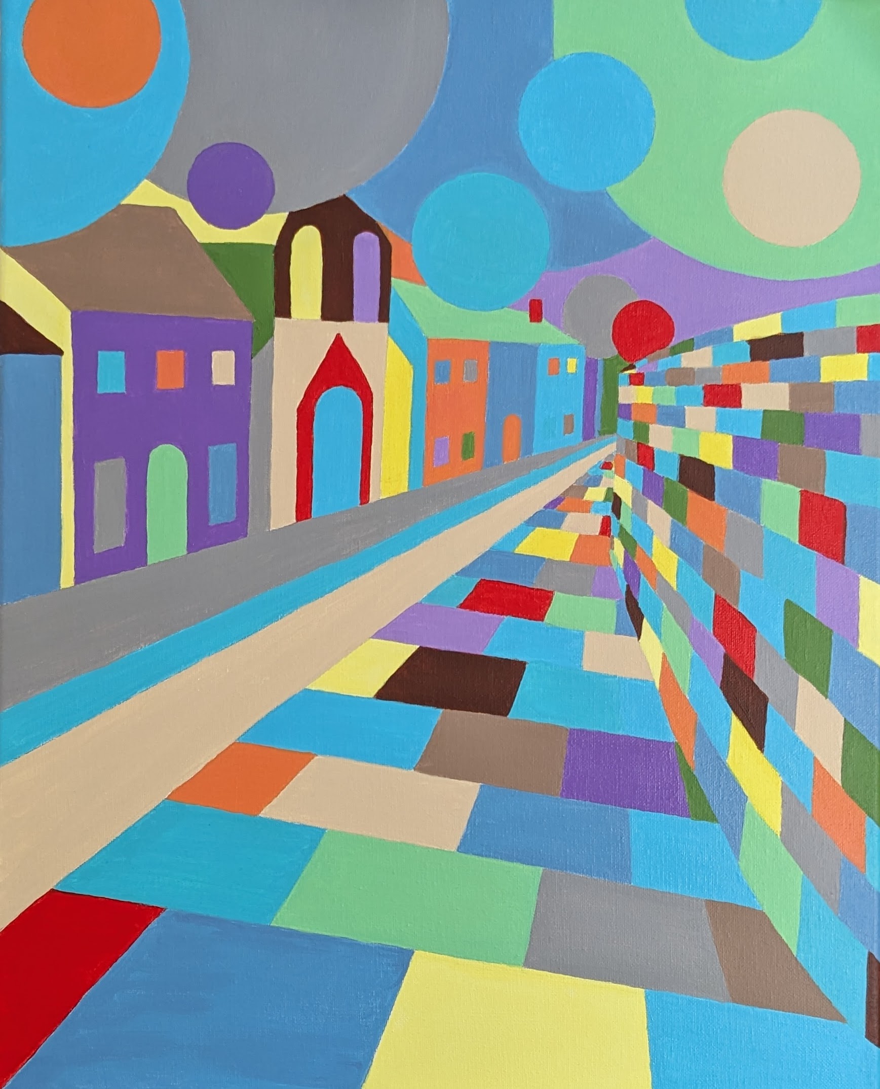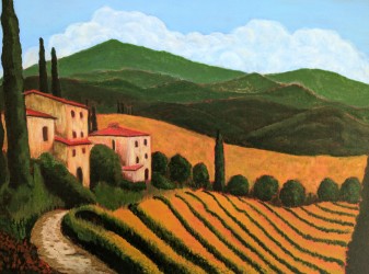 Whether going from a memory or looking at a photo, most of her creations start with a very quick line drawing. Usually she’ll translate a small amount of that directly onto the canvas. Beyond that, there often isn’t a big plan. Following her intuition, the painting will take shape.