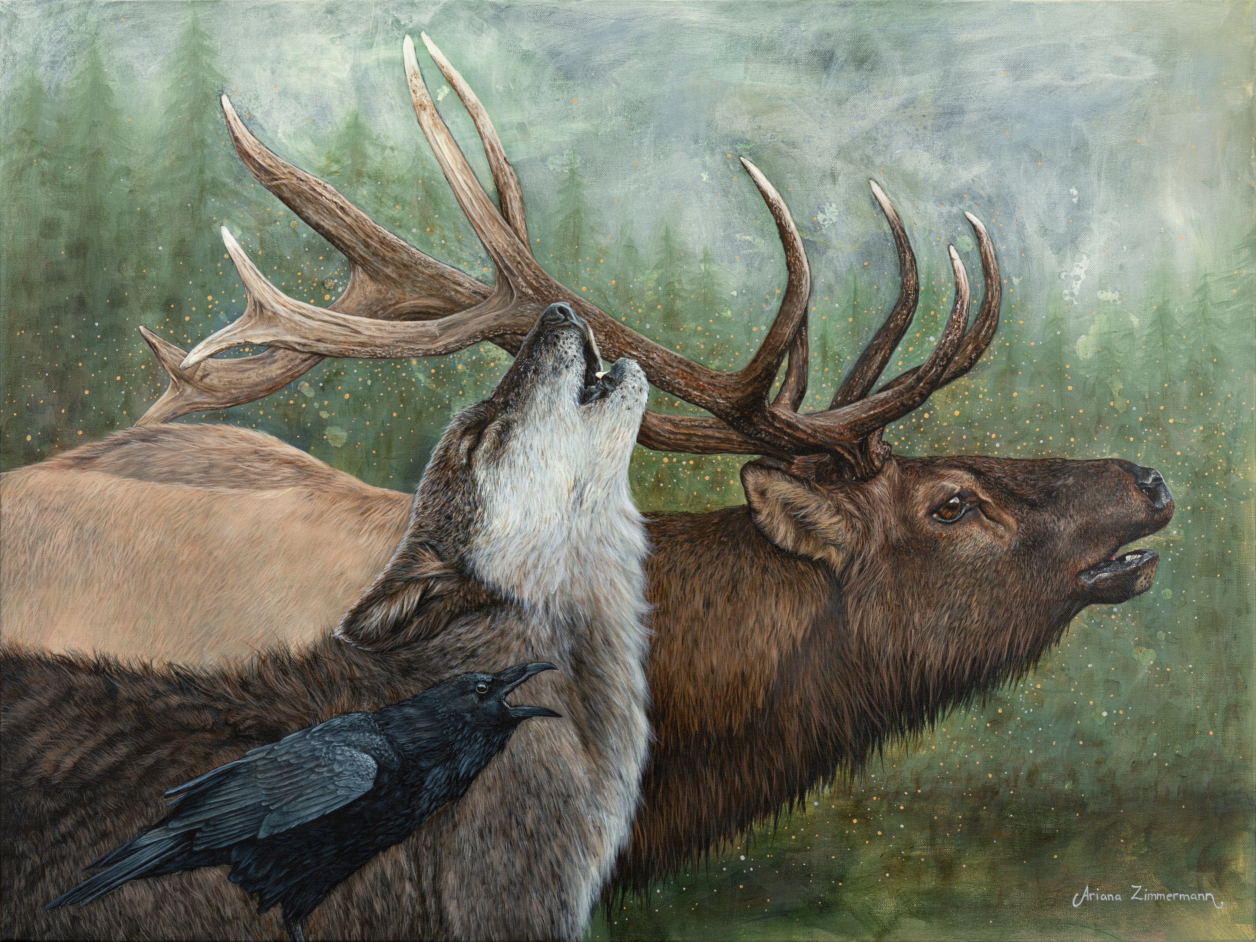 Ariana is an emerging, self-taught artist based in Victoria, B.C. Her mixed-media paintings center on animals, translating the human experience through the archetypal symbolism of wildlife. She creates images of the natural world that balance imagination with representation: honoring the beauty in nature while creating space for the magic, mystery, and interpretation in the human-nature relationship.