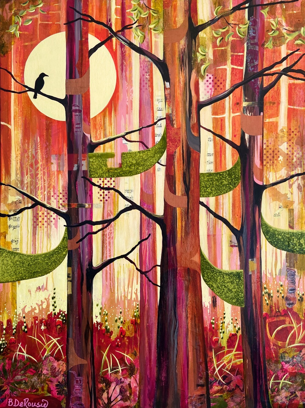 Barb began as a Watercolour artist but more recently began to explore the world of mixed media abstract, which has uncovered a hidden passion for exploring this wonderful way of artistic expression. Barb uses an intuitive approach, especially in the beginning-painting in response to what is there and making adjustments along the way, following the principles of design, value & colour. This provides her the freedom to paint more from how she feels, rather than from what she sees (ie, using a reference).