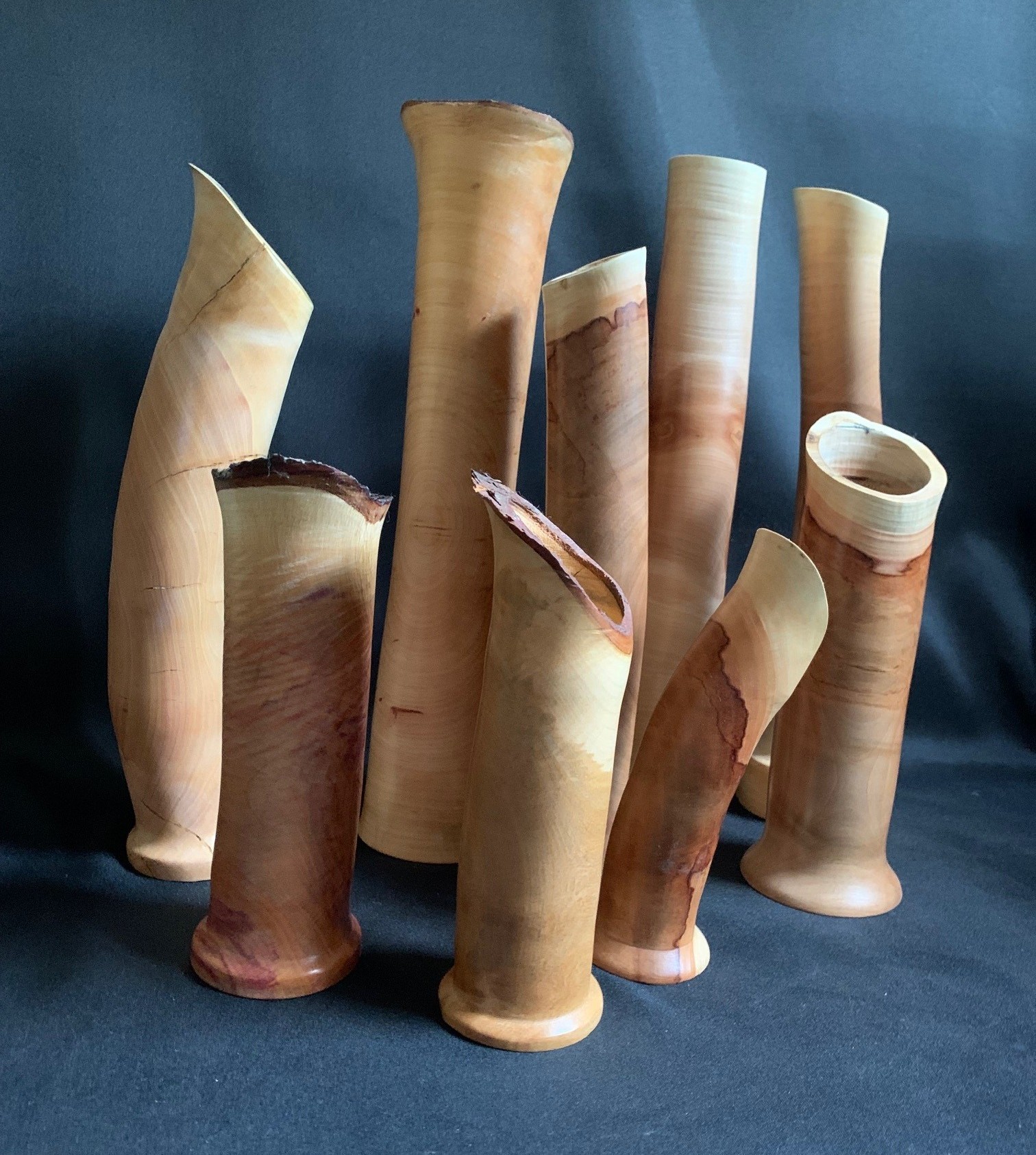 Brent is a wood worker residing in Victoria British Columbia who creates functional wood art. His interest in wood goes back to his childhood when his father had to remove an oak in the backyard. He remembers taking it to the local mill and discovering the growth patterns. He began making furniture with hand tools and in 2021 found a passion for wood turning. His wood is reclaimed from waste piles at local mills, construction sites, roadsides, hazardous or diseased trees removed by tree service companies, ocean driftwood, old furniture, and from neighbors that have had wood laying around their yards for years. He has collected 32 species of wood from the Victoria area, including native Garry Oak, Arbutus, Yellow Cedar, Portuguese Laurel, Monkey Puzzle and London Plane.
