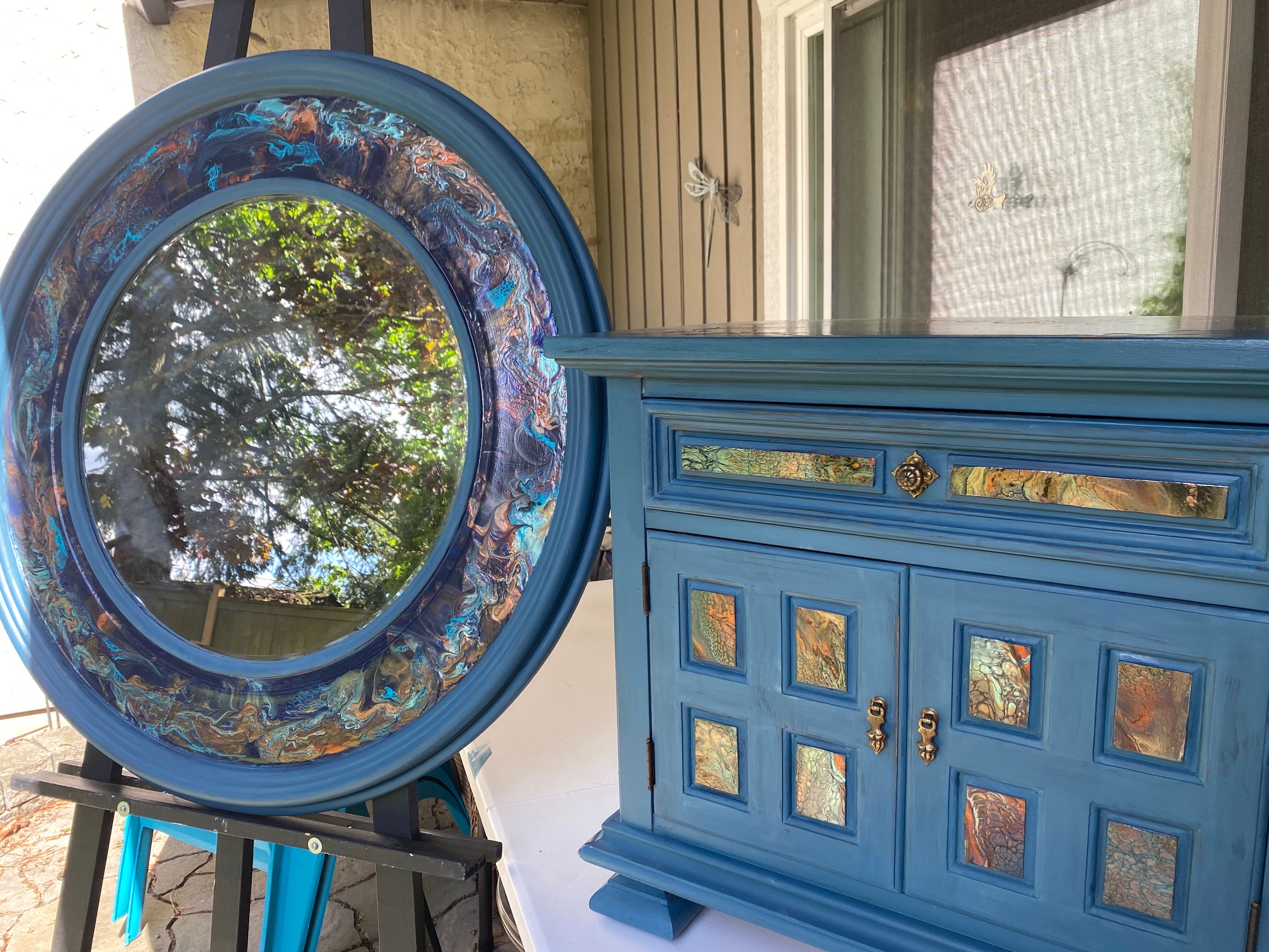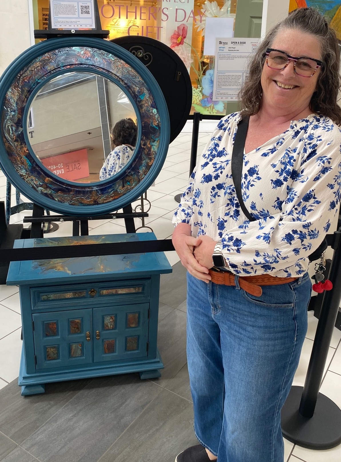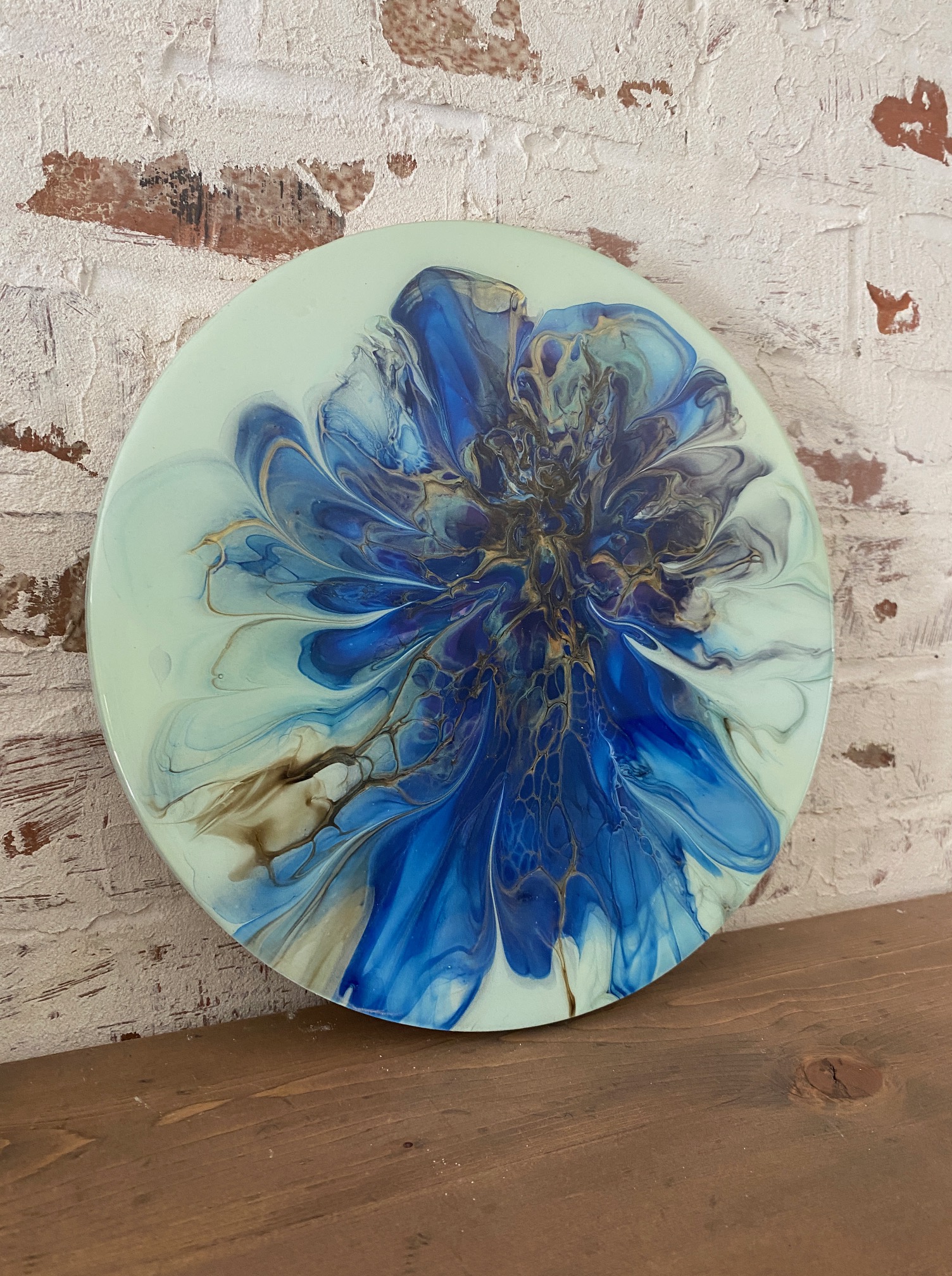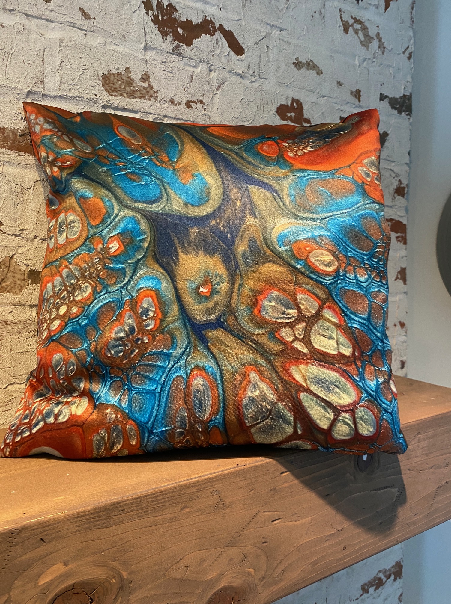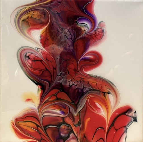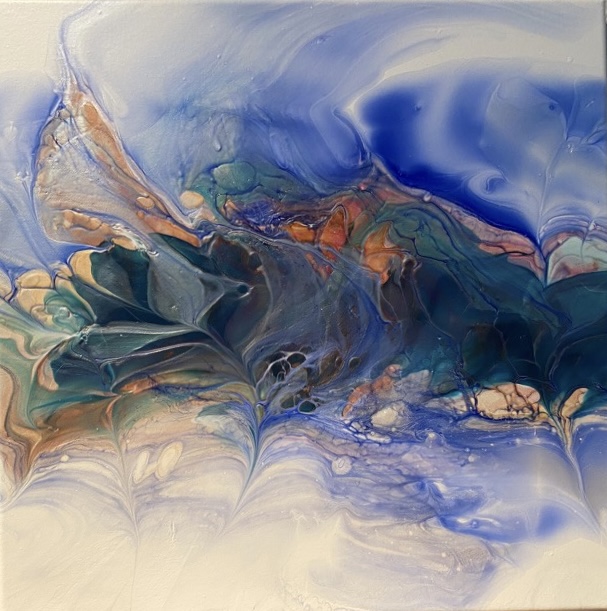 Denise’s medium is acrylic with a focus on acrylic pouring but she also handpaints jewelry. Denise’s art is a collaboration of her imagination, the colours in her world, and movement. She is inspired by nature, people and music. Each piece is a journey of exploration and curiosity. As she notes: “I believe that we all need more colour in our lives and if my pieces bring that into someone’s space, then that is my joy”.