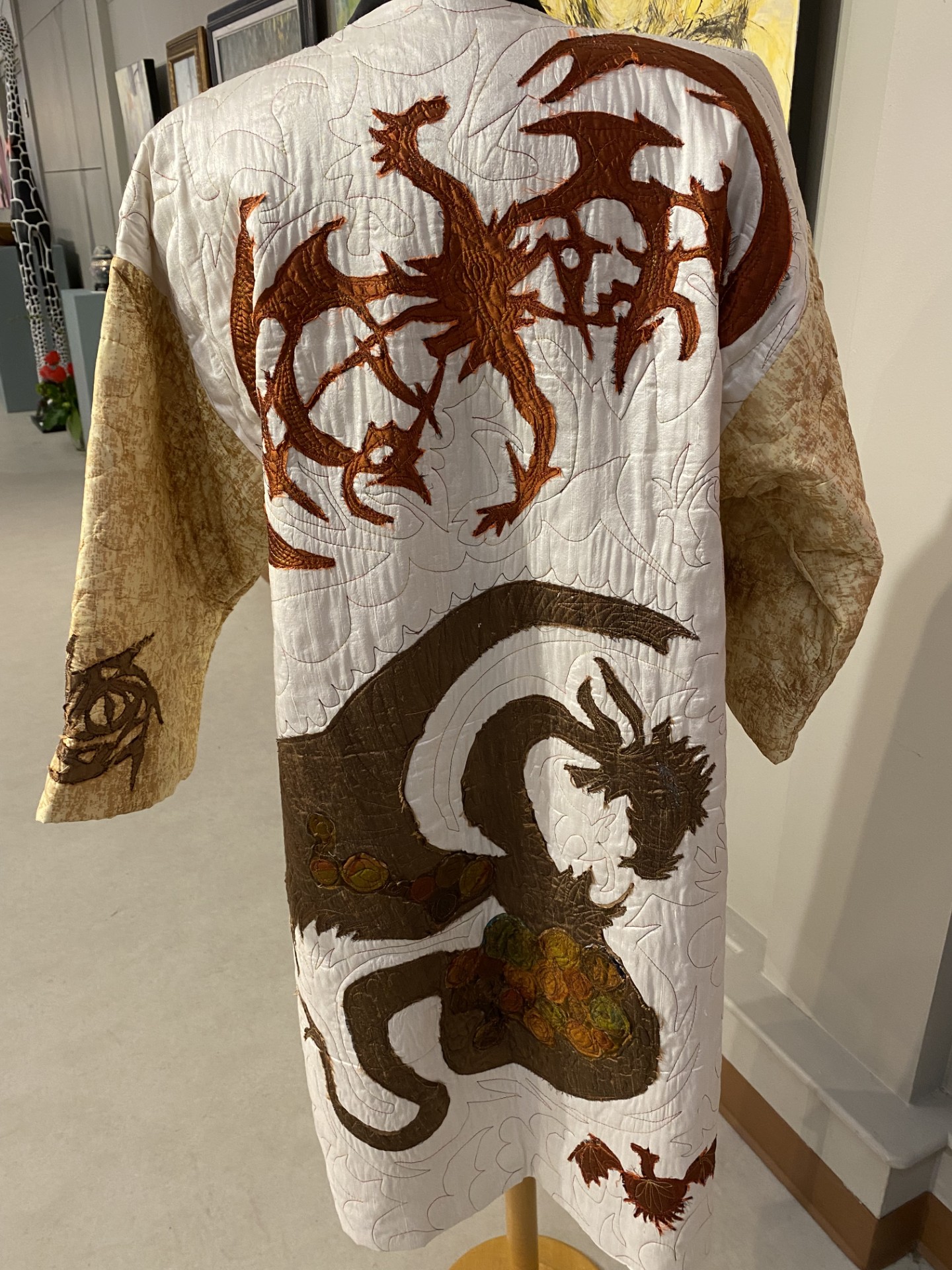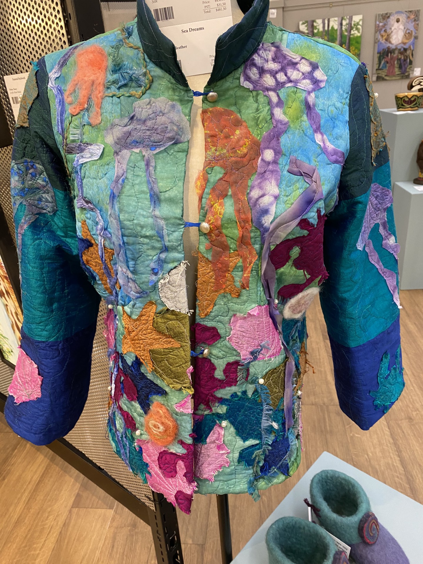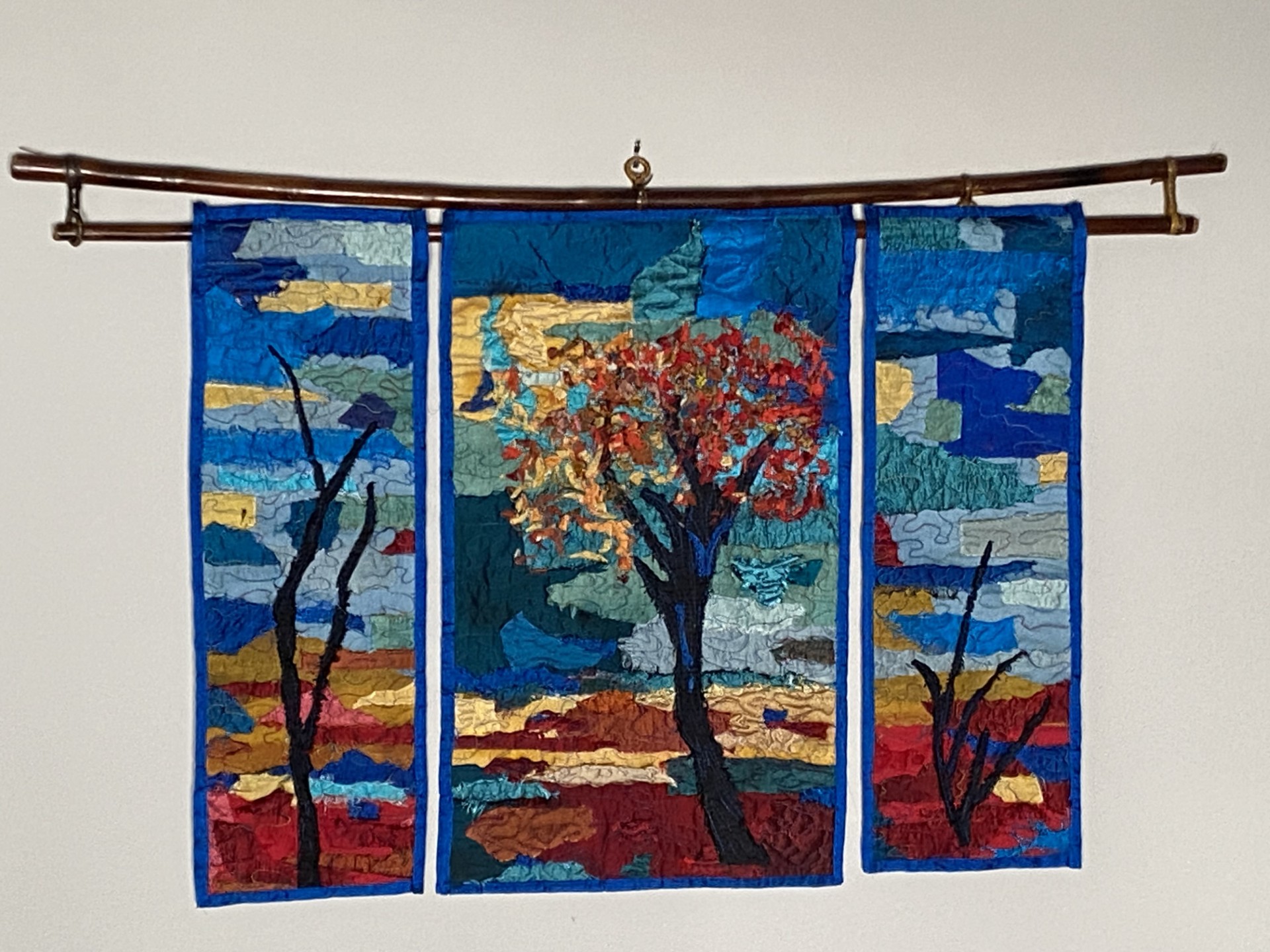 Creative fabric art is Heather’s artistic avenue, and she specializes in wall hangings and wearables. Her first love is colour, especially used with texture and her inspiration comes from our beautiful environment. Heather works mostly in silk, with a basis in free motion quilting, and she loves to paint silk as well.