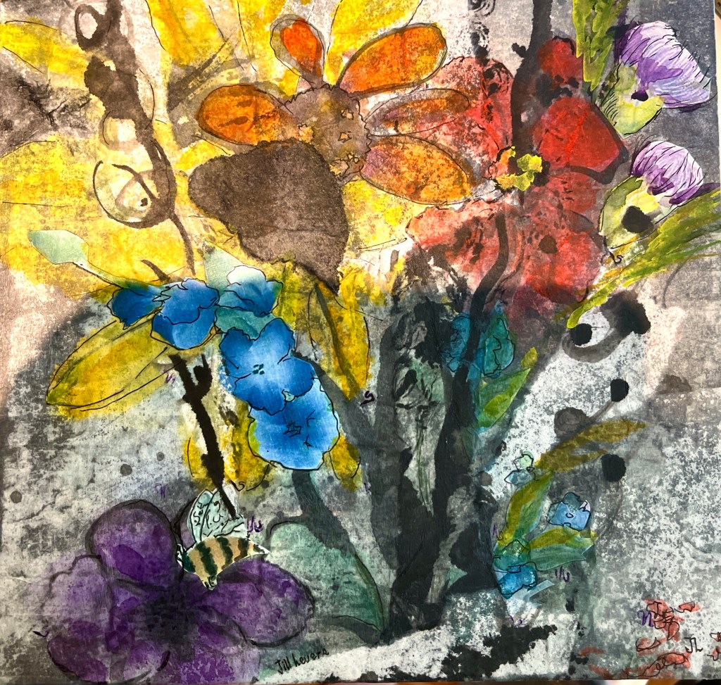 Jill Levere works primarily in watercolour or acrylics, but is often drawn to include the use of watercolour pencils, ink, pen, pencil drawing, sumi art, and even a little collage. She loves to explore new mediums, a variety of tools, and various genres from realistic to abstract, while dabbling in urban sketching, and abstract realism. She also enjoys exploring the use of recycled wood as an occasional canvas.