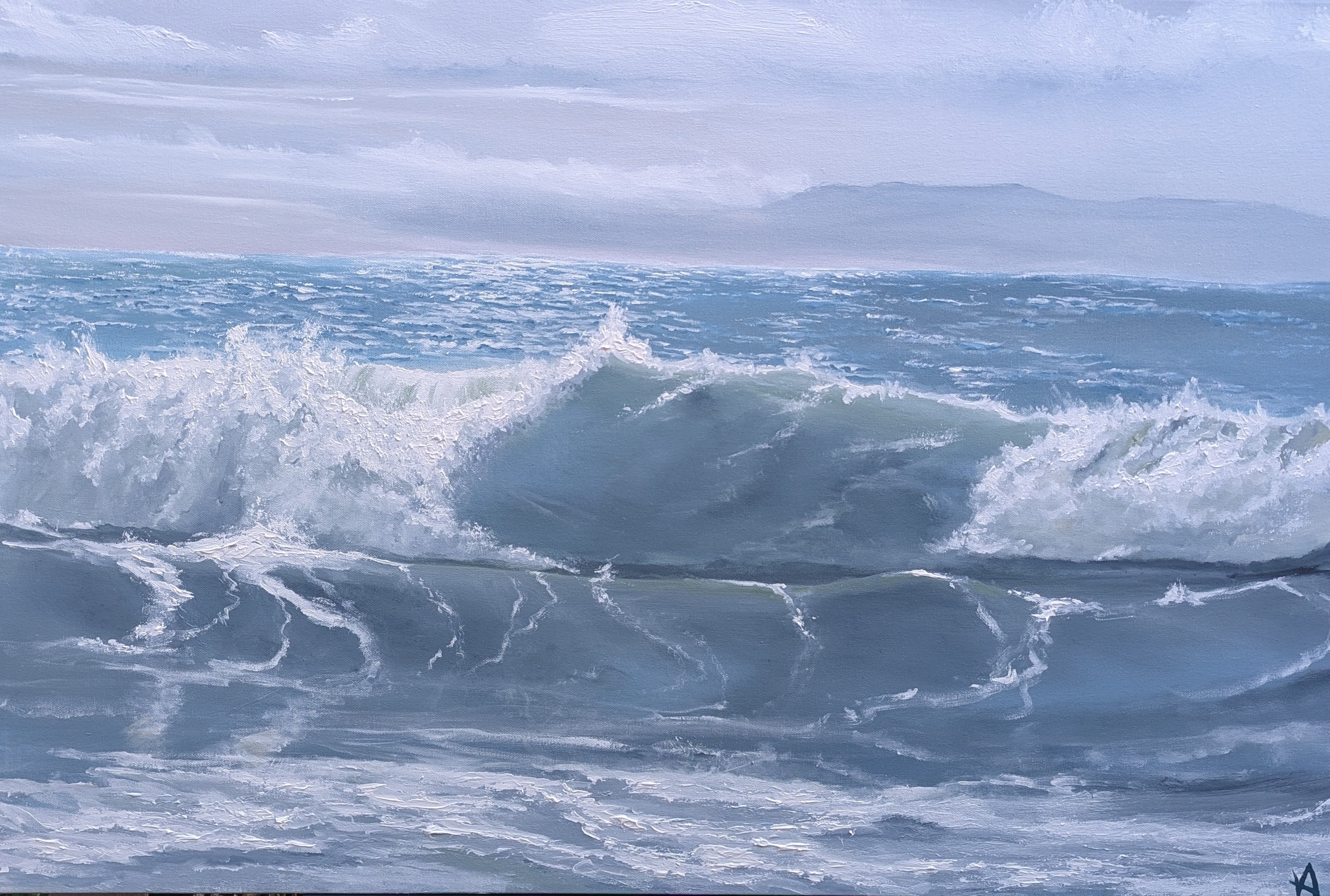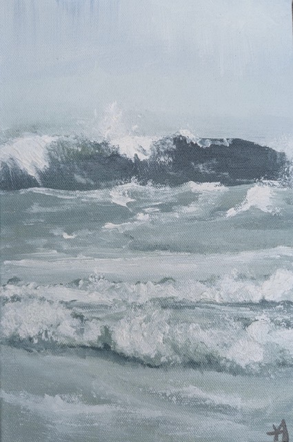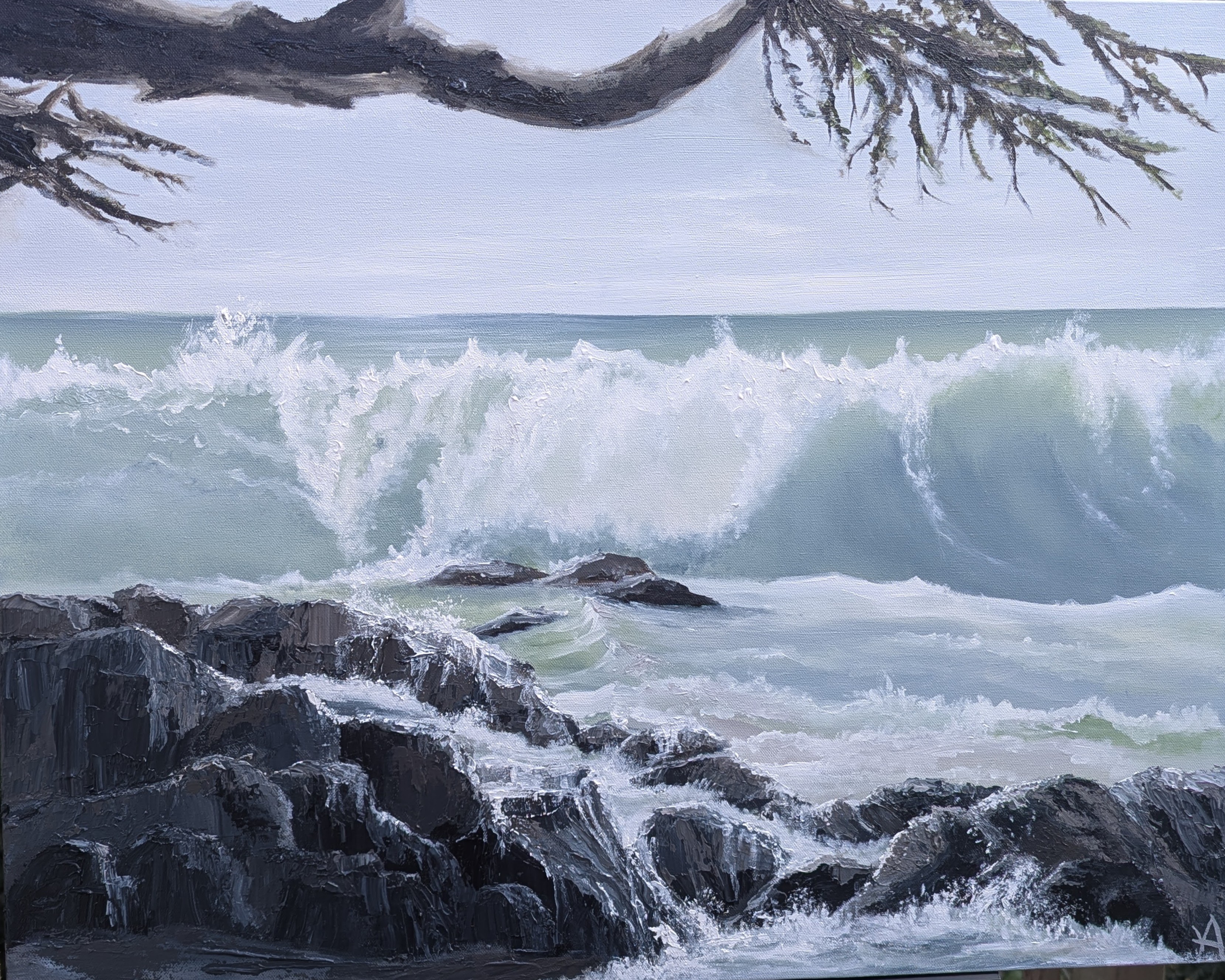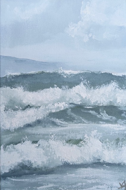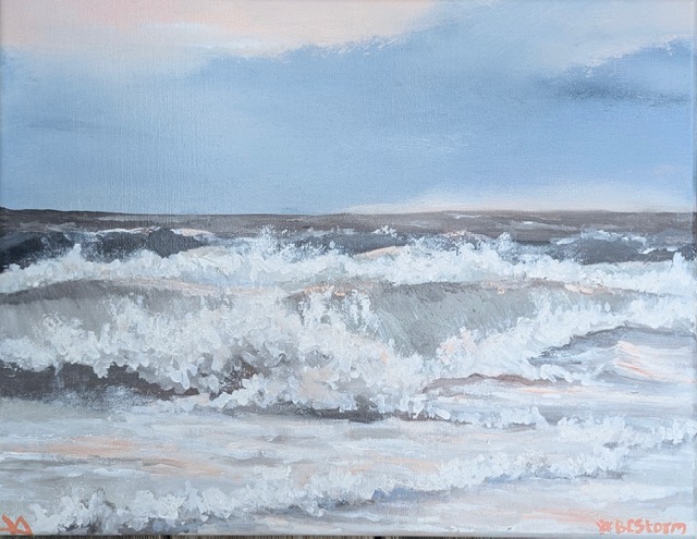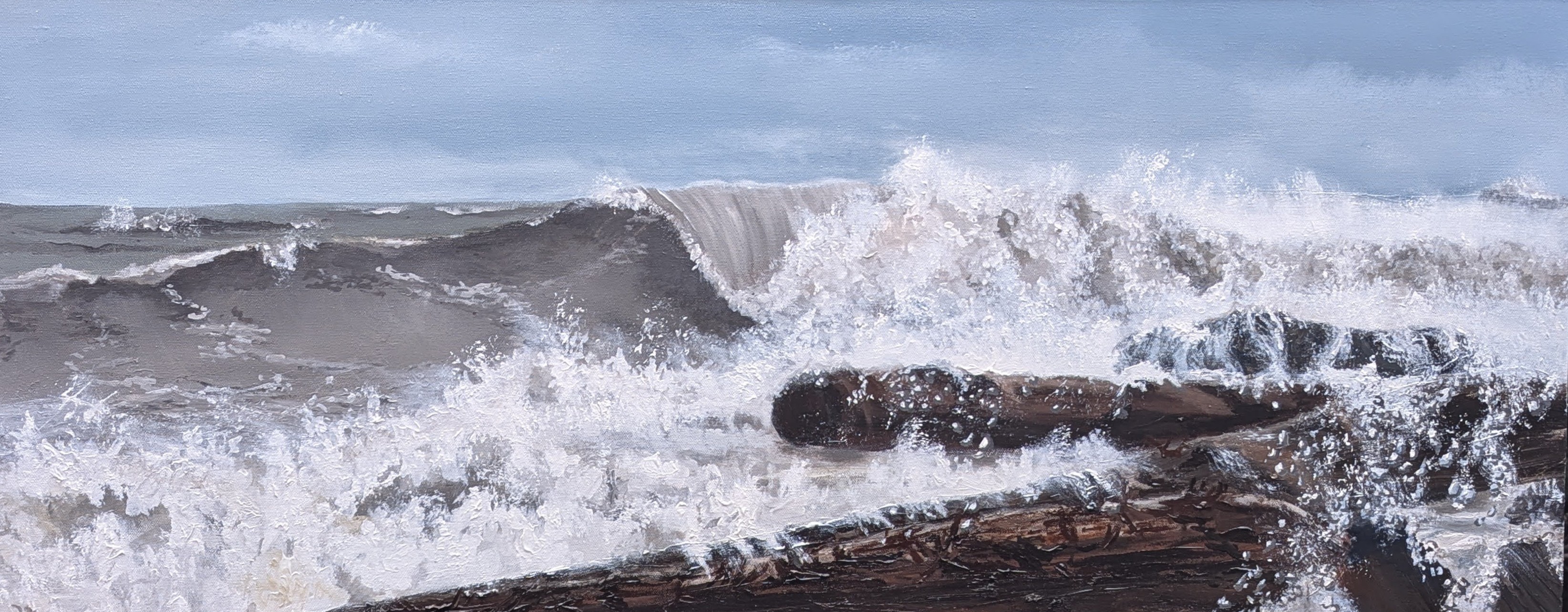 Using thick layers of acrylic paint, limited colours, pallet knives and textural mediums, Jolanta developed a unique, tactile and storied style of painting within the Impasto tradition. As a way to express emotions stemming from challenges of caregiving, Jolanta was strongly drawn to ocean storms, which soon became the focus of her painting content. Jolanta aims to paint both, the storm, and the emotions that one experiences while storm-watching.