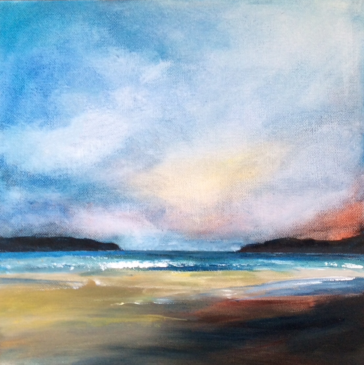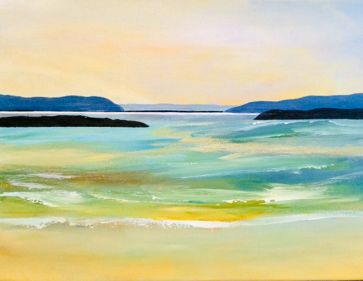Karen enjoys experimenting with acrylics and loves creating texture with molding paste, gels and mixed media. You will also find some of her work done in watercolours, oils and alcohol ink. She is especially known for her beautiful acrylic abstract beachscapes. She is inspired by life’s surprises, insights and joy and loves art that implies “serenity” and “simplicity” and at the same time loves creating abstractions.