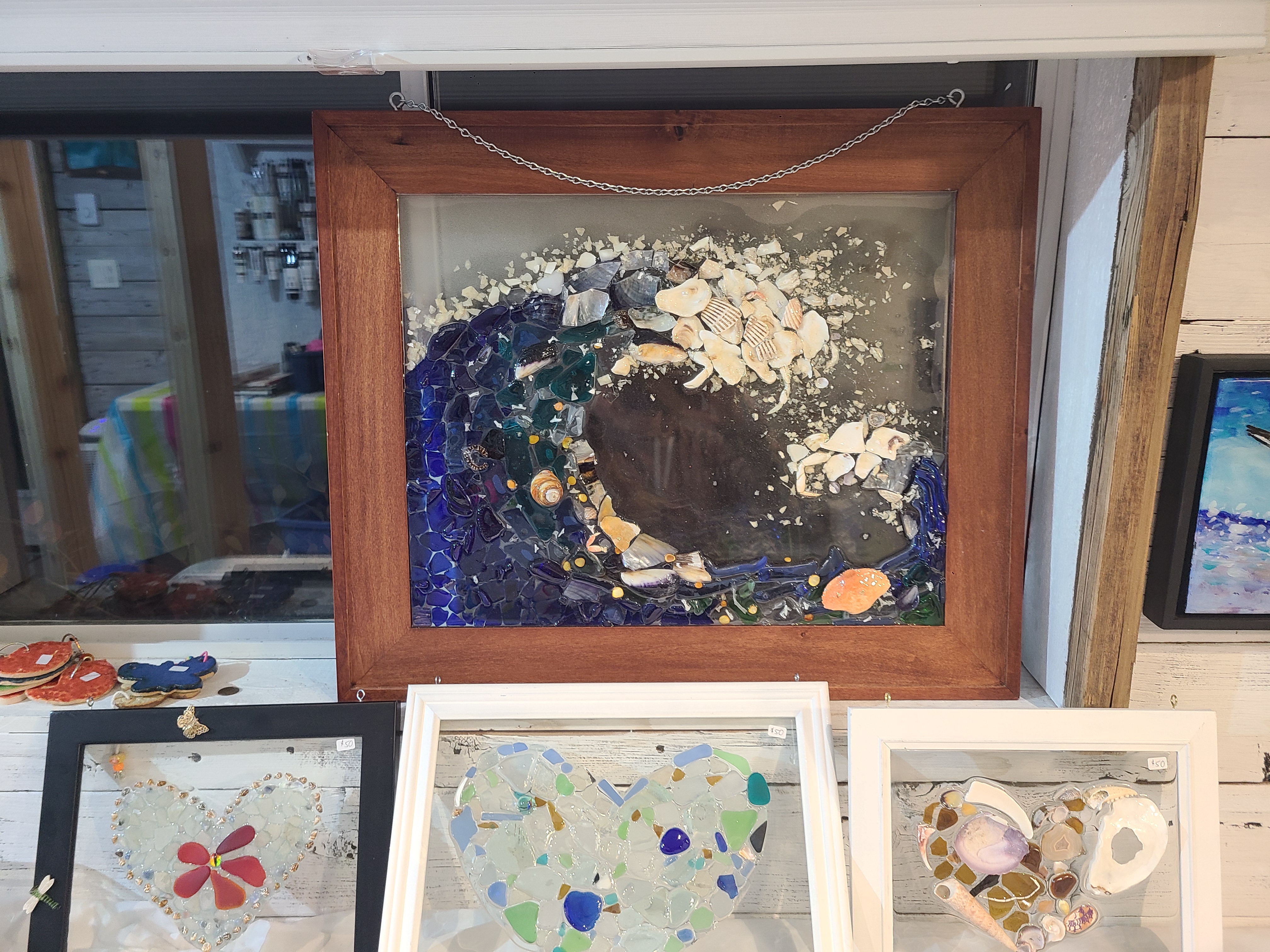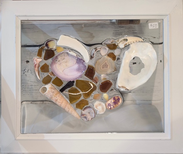 Kari describes herself as an emerging artist who enjoys spending time in the forests and on the beaches of Vancouver Island. Kari is known for her realistic depictions of bird life, her bright, abstract florals, textured landscapes and painted marine buoys. Rather than paint in a completely realistic style, Kari likes to add unexpected colour, marks and textures to hold a viewer’s attention. Lately Kari has been painting original acrylic art on canvas bags and creating art with sea glass, shells and resin – iconically West Coast!