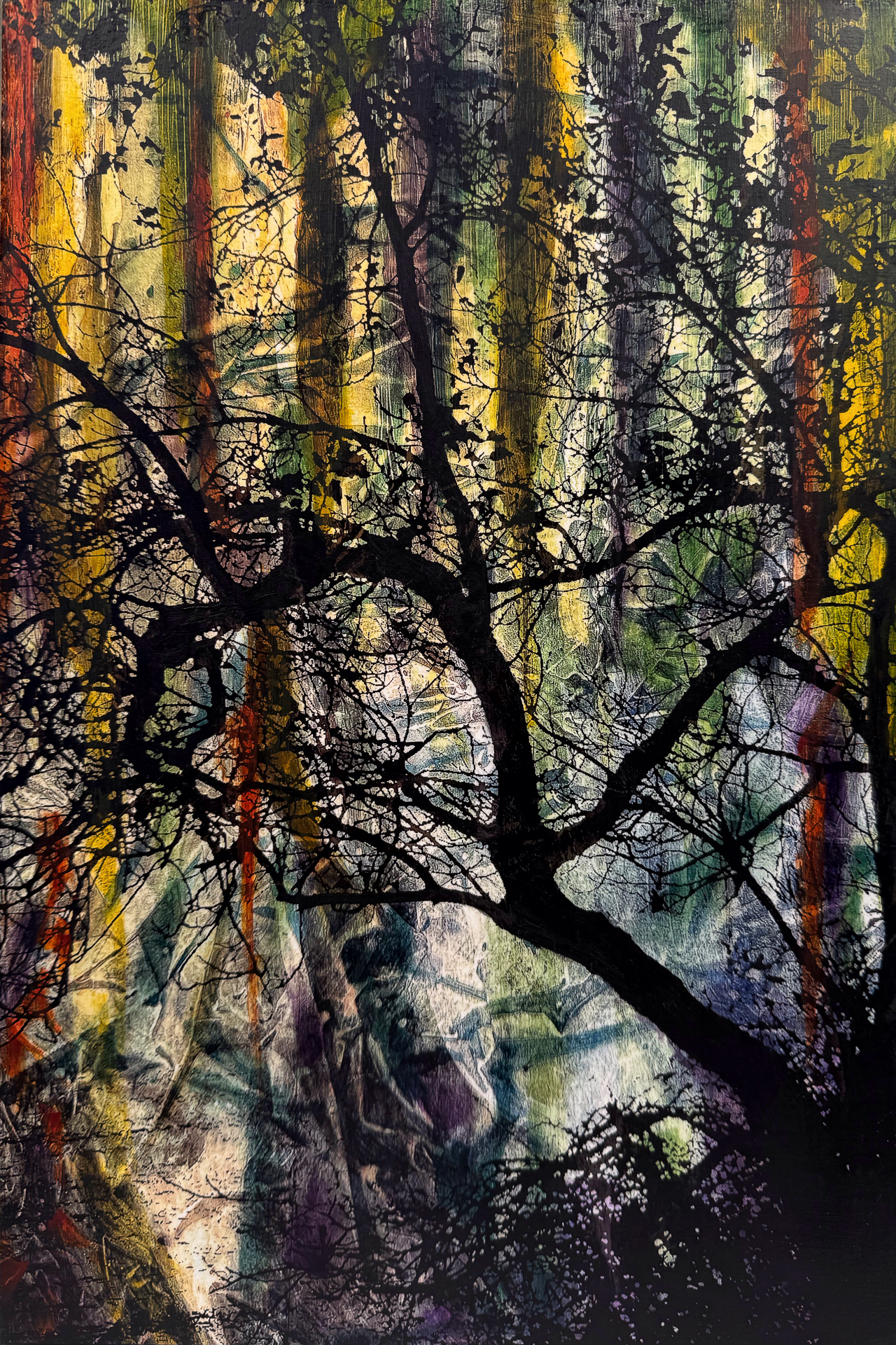 Liz is a photographer, printmaker and mixed media artist. Her current body of work generally starts with water-based media, often incorporating collage elements, including photography, digital art and paper she has handprinted or painted. Liz’s process often cycles back to her love for wax, formerly encaustic, now cold wax and oil. Still working in layers, obscuring then revealing / waxing and waning, she continues to explore the interplay between light and colour.