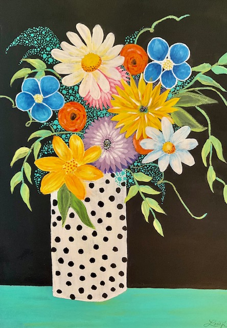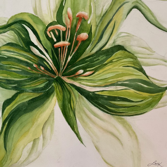 Lois’ art journey began with watercolour, inspired by the shining light from within and the flowing qualities of this medium capturing her interest and imagination. Recently, she has been trying her hand with acrylic painting and finds that she enjoys the many textures and bold colours available through this medium. The subjects of her paintings began with floral botanicals and have since branched out to animals and picturesque scenes gathered from her hometown and travels.
