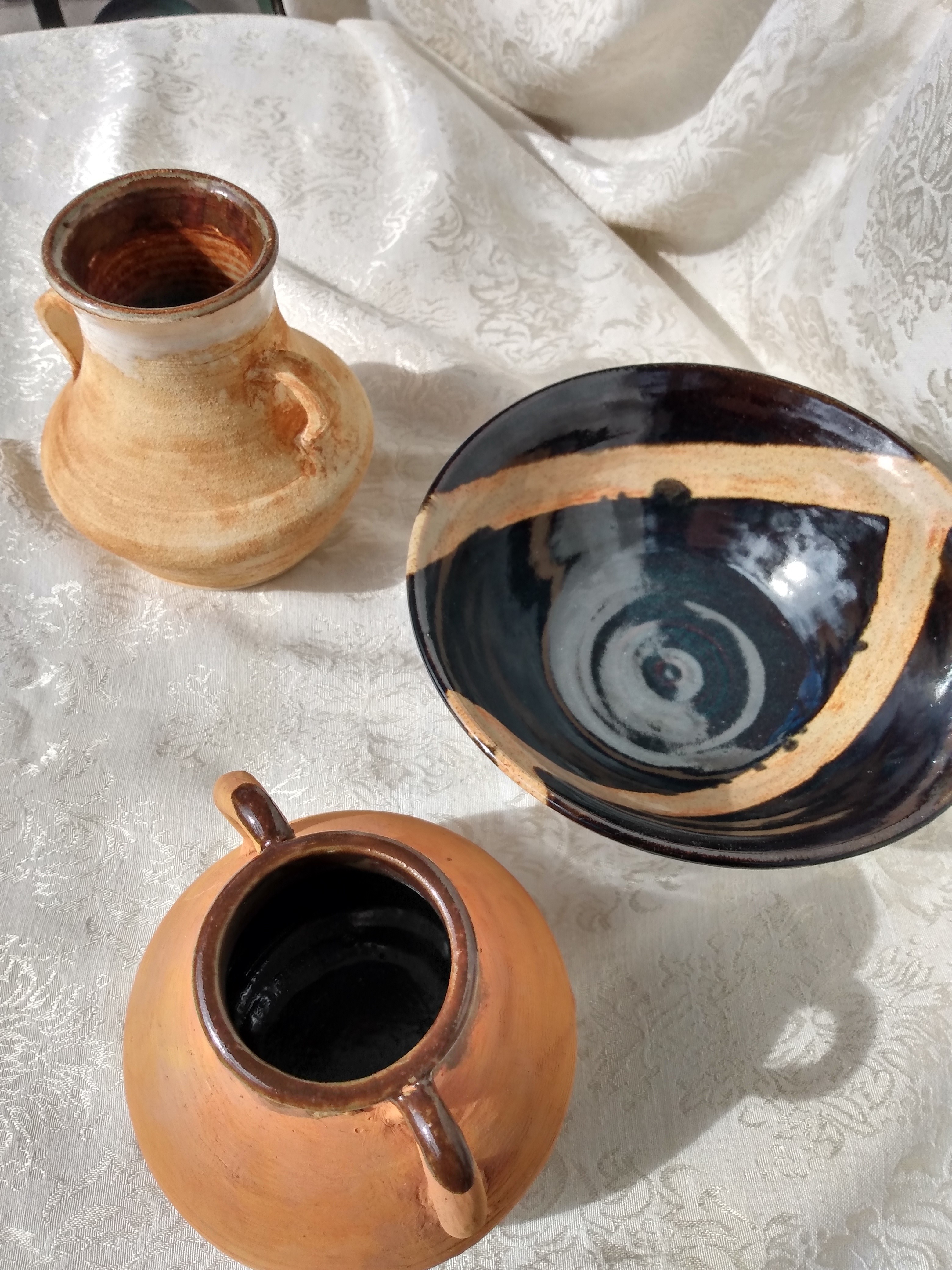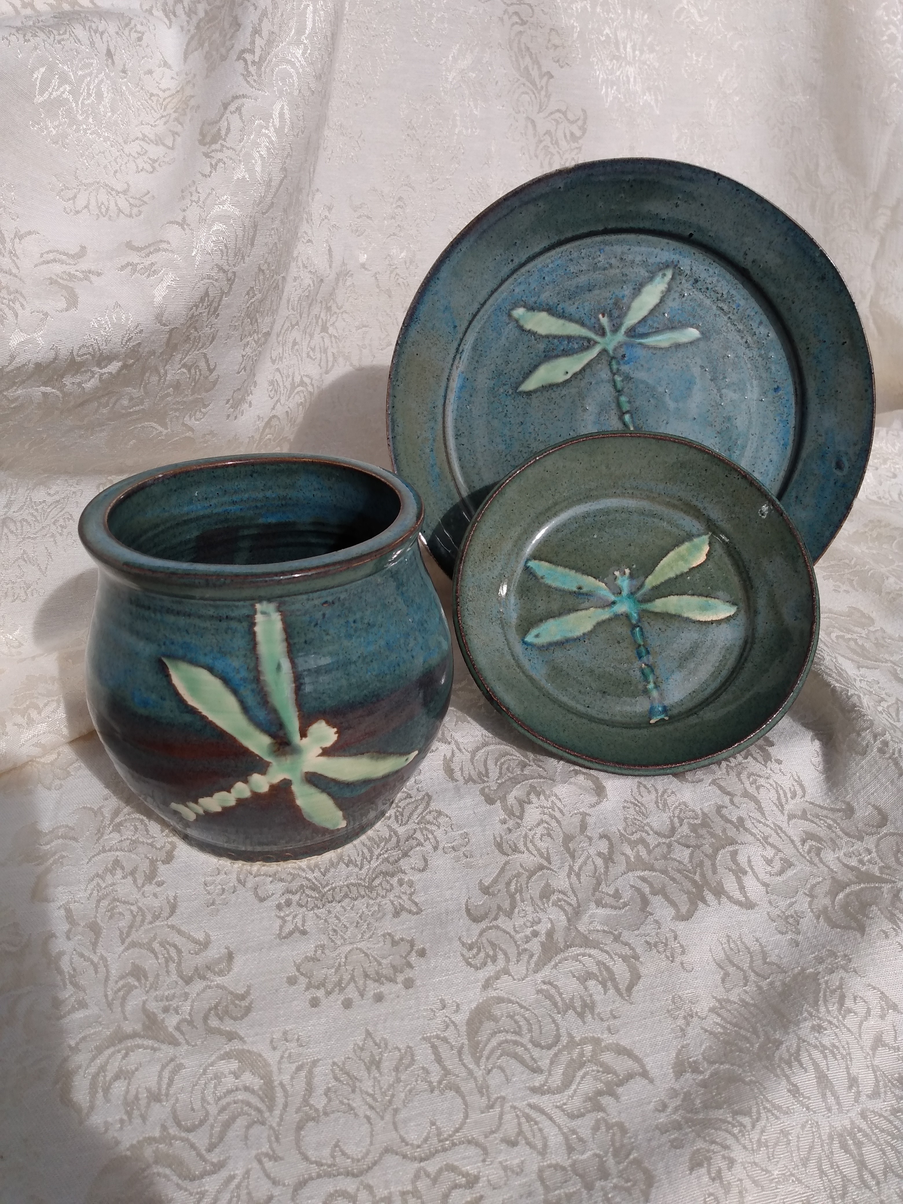 Lynn’s pottery work is functional and sometimes whimsical. Each piece is unique and has a personality which makes it enjoyable to use. While Lynn uses a potters wheel for much of her work she also does sculpture and is exploring the human figure. Lynn notes that people have been making pottery for thousands of years leaving their fingerprints behind for us to study and remember them.