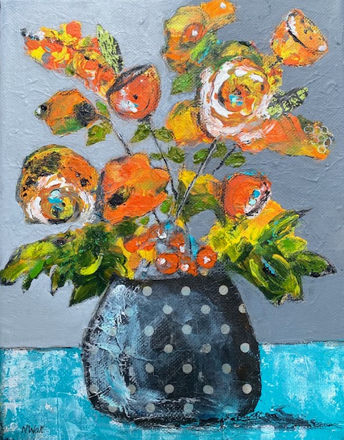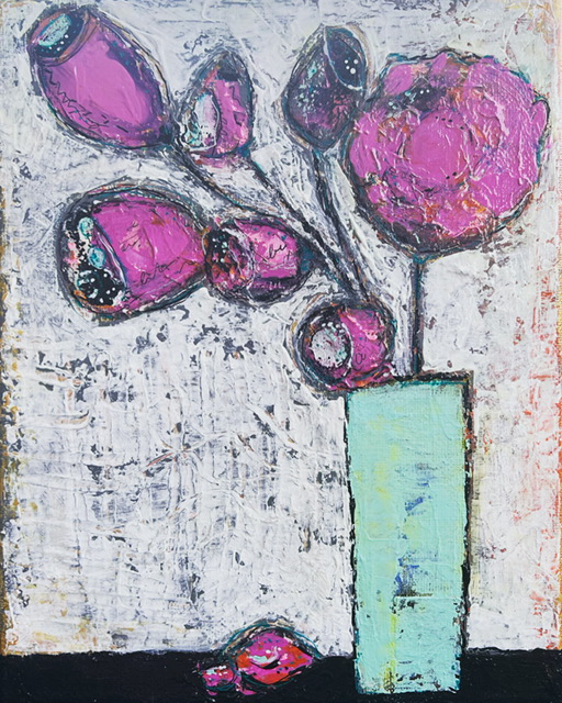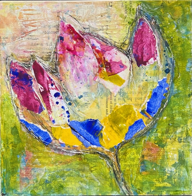 Nancy is a mixed media artist working with collage, acrylic paints and other water-based media. She has taken formal and informal art courses and continues to evolve her skills. Much of her artwork would be described as abstract collage, but she also produce whimsical portraits. She incorporates bold colours, texture, and abstract mark making into her work. For satisfying results, she especially loves to paint, print and dye collage papers with the gelli plate. Aside from painting, she has many interests such as journal making and working with textiles. Nancy belongs to several Victoria area art groups and is one of the organizers for the Saanich Scattered Artists Tour.