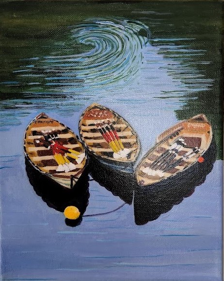 Paula started painting about 20 years ago. She originally painted in watercolor exclusively and then moved on to acrylics. She is now enjoying experimenting with water soluble oil colours. Primary colours fascinate and intrigue her. She has taken many art courses from respected local artists over the last 20 years. She was born in County Galway Ireland, and immigrated to Canada as a registered nurse at the age of 24.