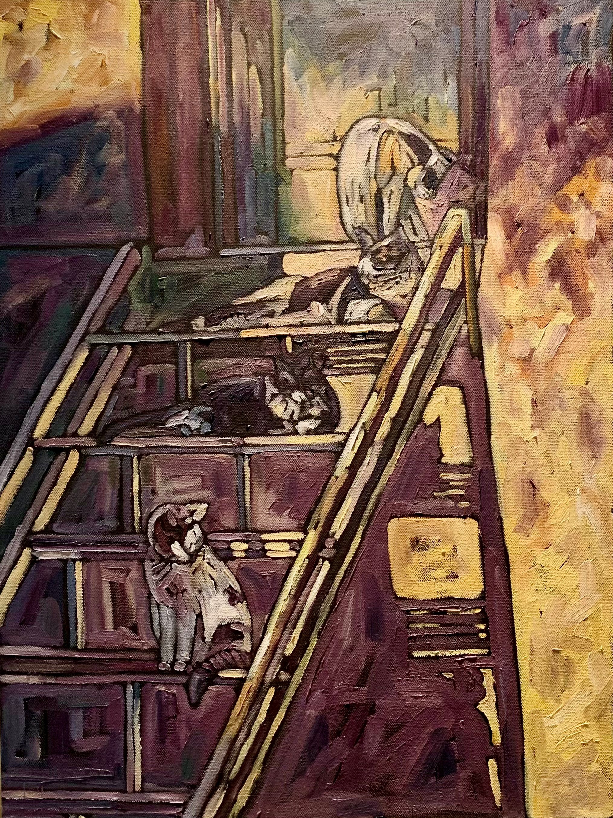 Simon works in oil on exhibition wood cradle panel or deep gallery wrapped canvas. While he has studied art in a variety of formal settings, he finds being a self-directed life long learner continues to have the greatest impact on his art practice. Simon has experience creating art in stained glass, especially how it is expressed as