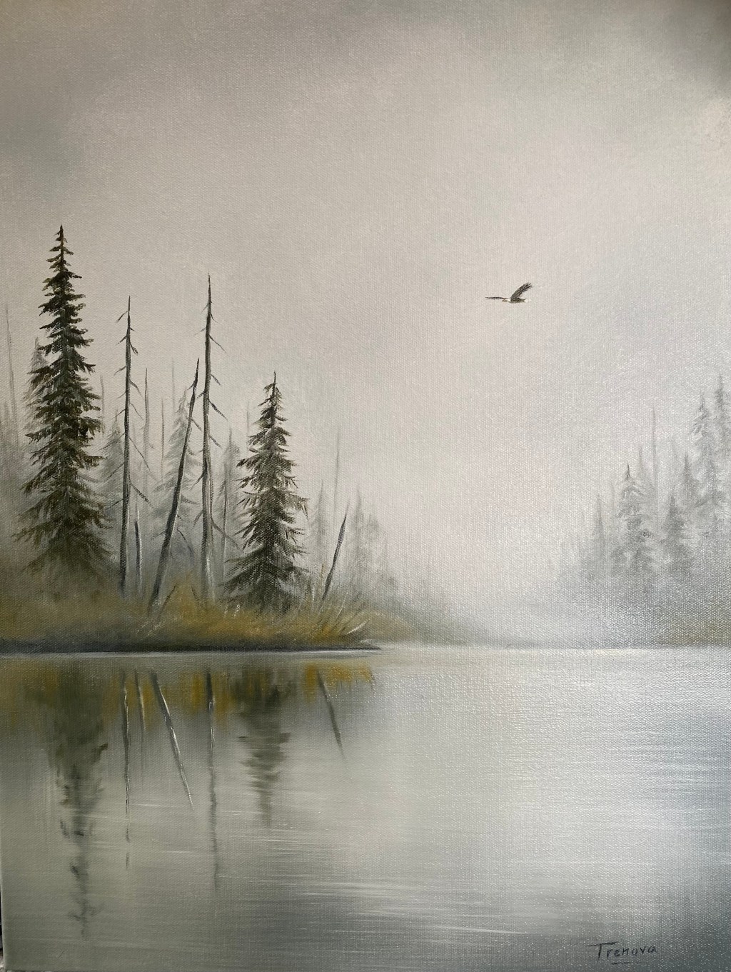 Loreto and Pilar collaborate on their paintings, using oil on canvas to create moody landscapes and dreamscapes that invoke a sense of calm and serenity. Focusing on a West Coast vibe, valleys, fjords and coastal island seascapes are the primary focus of their recent portfolio. Mist and fog are central features of much of their work. They have developed a unique style that can be easily recognized and immediately draws people in.